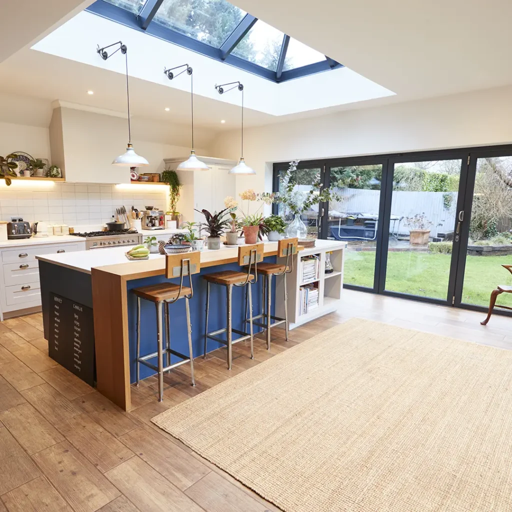 Choose pitched or flat roofs, rooflights, large glazing, and modern finishes.
